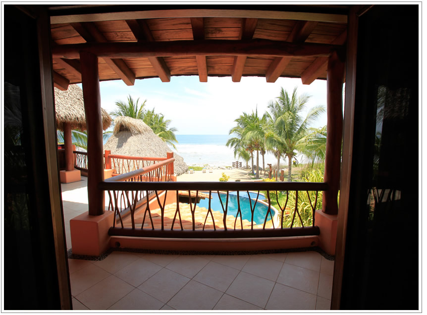 Lluvia Suite is one of the 3 suites on the upper level, it has 2 twin beds which can also be arranged as a kingsize bed if desired, plus a futon sofa, a big bathroom with ample closet space and a wonderful view of the ocean. It has direct access to a shared Palapa balcony with one of the 2 outdoor and ocean view Kitchens.