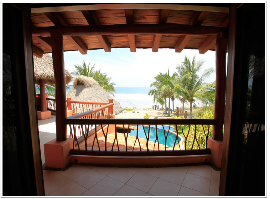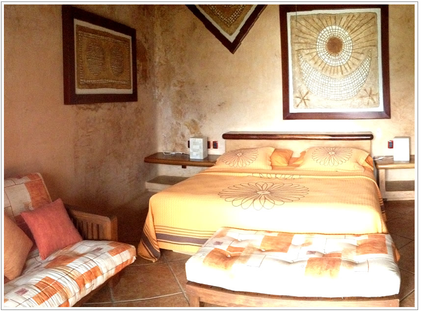 Agua Suite is one of the 3 suites on the upper level, it has 1 King Size bed plus a futon sofa, a big bathroom with ample closet space and a wonderful view of the ocean. It has direct access to a shared Palapa balcony with one of the 2 outdoor and ocean view Kitchens.
