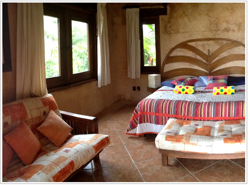 Arena Suite has 2 twin beds which can also be arranged as a kingsize bed if desired, plus a futon sofa. It is a corner suite with lots of windows to enjoy the ocean and garden views. It offers direct access to the pool on the lower level.