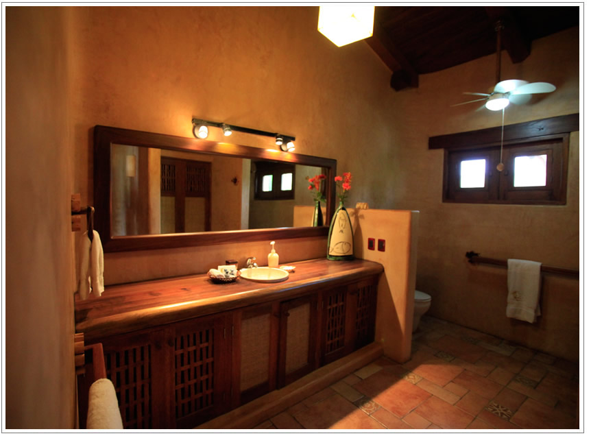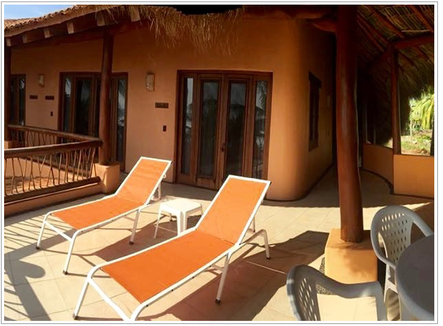 Lluvia Suite is one of the 3 suites on the upper level, it has 2 twin beds which can also be arranged as a kingsize bed if desired, plus a futon sofa, a big bathroom with ample closet space and a wonderful view of the ocean. It has direct access to a shared Palapa balcony with one of the 2 outdoor and ocean view Kitchens.